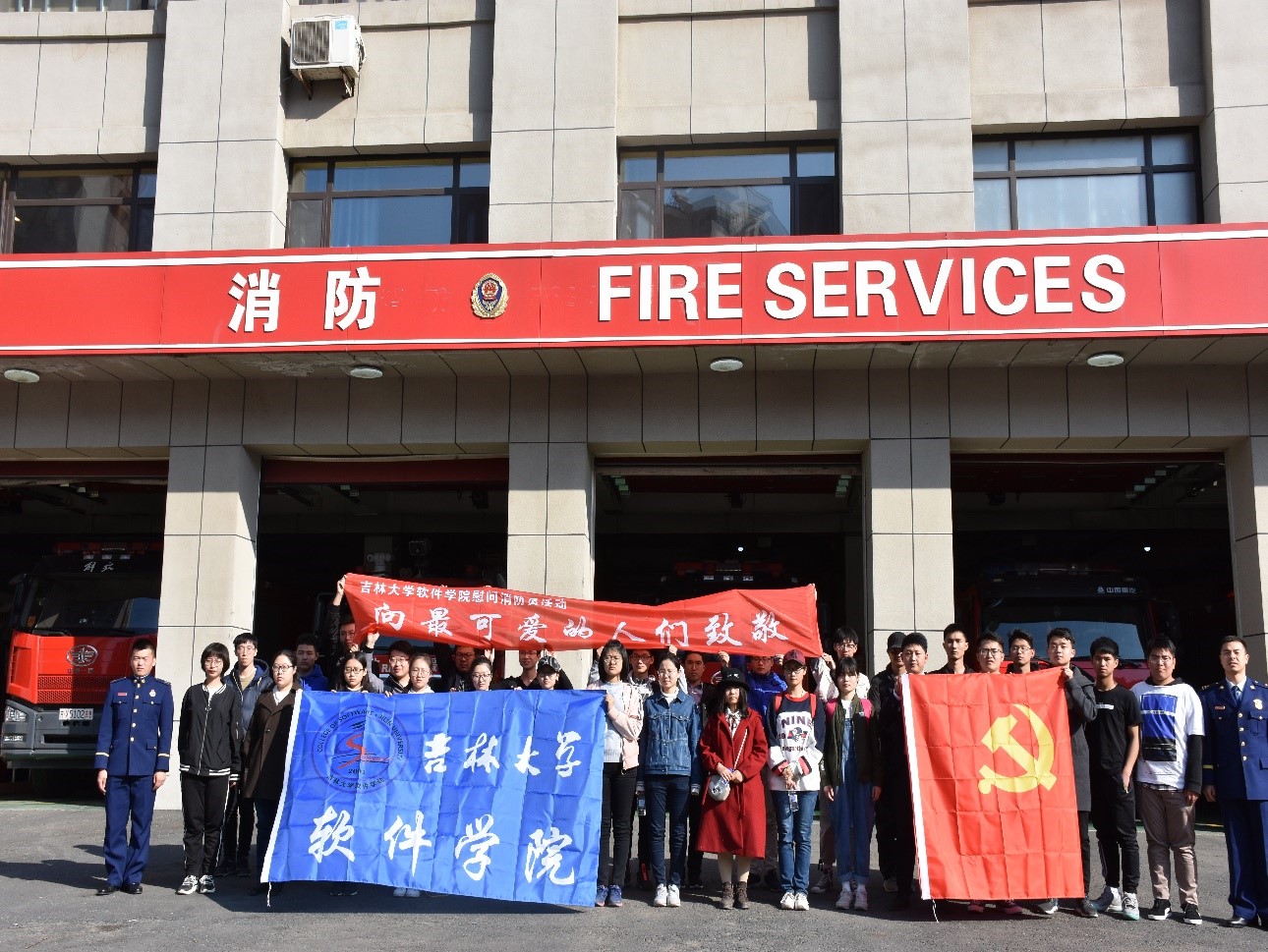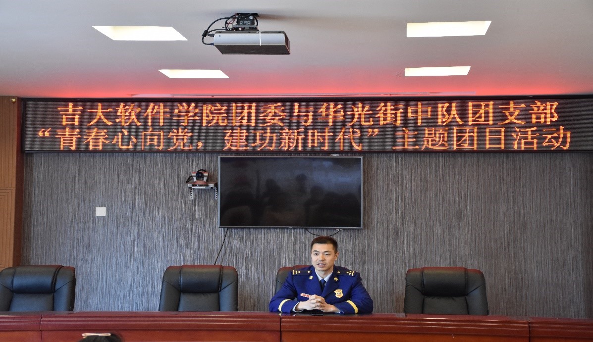 18级辅导员王震老师带领三十余名同学在长春市高新区消防大队开展了“青春心向党,建功新时代”的主题团日活动。