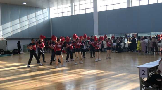 参赛队员就已经到达体育馆,并进行热身准备工作。本次比赛共分为四个环节。首先呈现的是所有学院的同学共同为带来的三十八度六,作为暖场和开幕式表演。随着音乐的结束,各学院依次开始了紧锣密鼓的预演。以上两个环节是为了帮助选手更好地熟悉场地、进入状态,同时也让评委对参赛各学院的风采和实力具有初步的了解。紧接着就是本次比赛的重头戏——正式表演环节。已经完全进入状态的肉漫屋