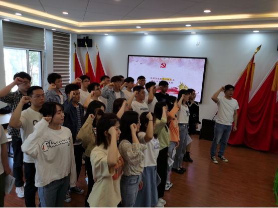 软件工程专业硕士学生第二党支部在计算机楼B340党员之家举行预备党员入党宣誓仪式,在党支部参会的正式党员的见证下,于怀志等25位同志进行入党宣誓。