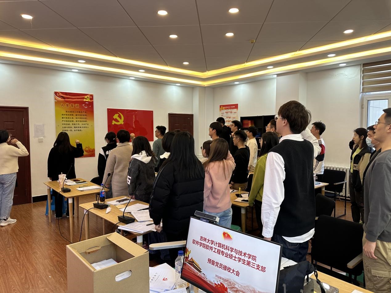 软件工程专业硕士学生第三党支部在计算机楼B340党员之家举行韩文强等21名预备党员入党宣誓仪式。