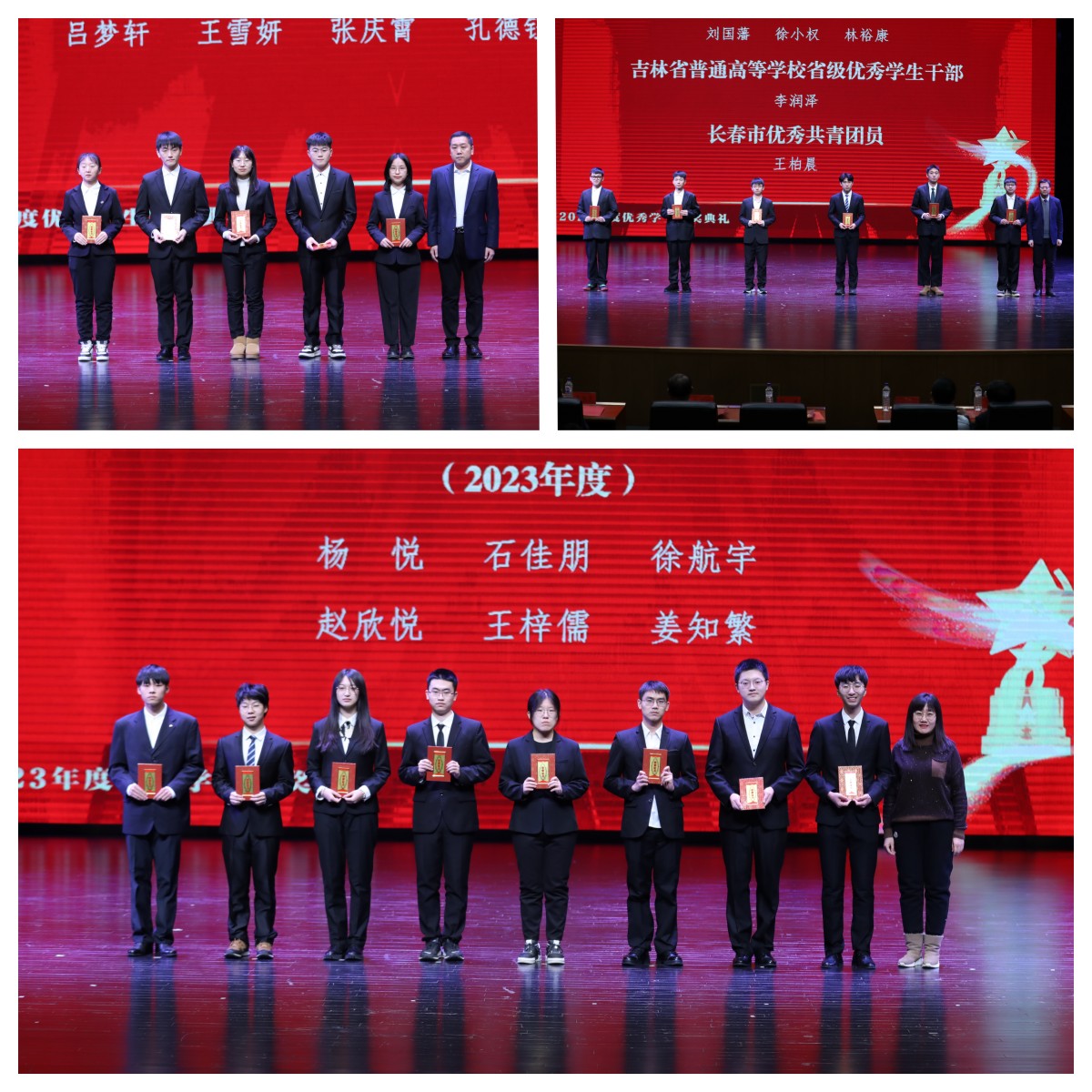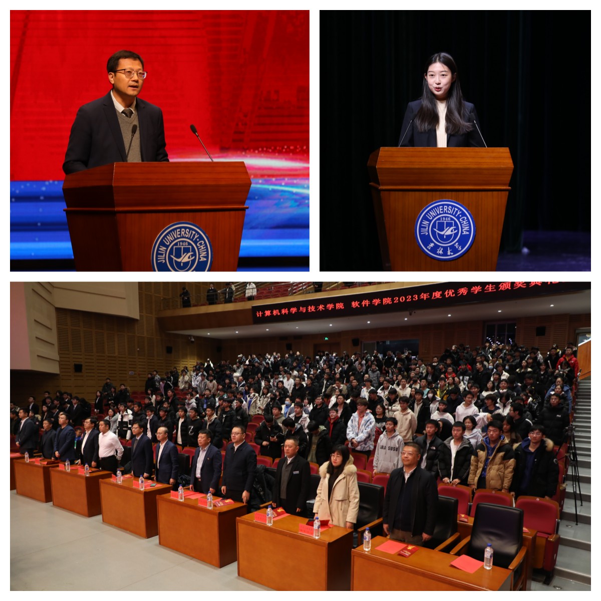 于鼎新大讲堂联合举办2023年度优秀学生颁奖典礼。校党委常委、副校长张国兴老师,学生工作部部长代磊老师,研究生工作部副部长兼管理办副主任张剑宇老师,保卫处处长刘雪峰老师,学生就业创业指导与服务中心副主任薛雷老师,学生心理健康指导中心主任朱丽雅老师,校团委副书记张大权老师,计算机科学与技术学院、肉漫屋