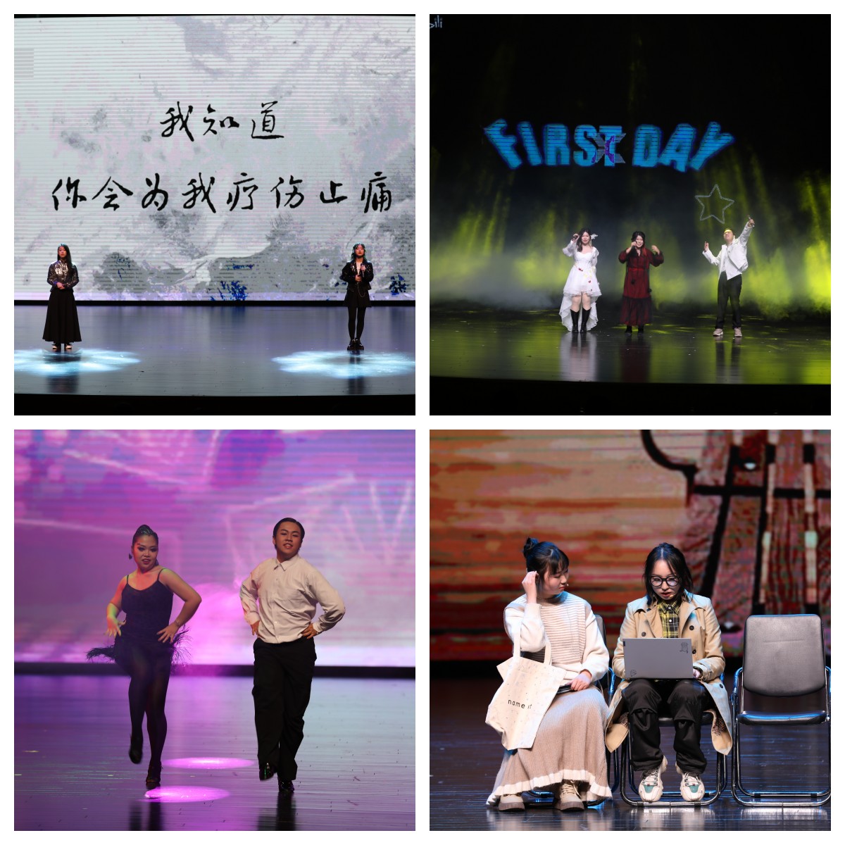 晚会在预热视频中拉开帷幕,跟随镜头我们重温了新生从开学到现在大学生活的足迹,并一起回顾了紧张热烈的晚会幕后筹备历程,激昂的音乐将大家的期待值拉满,正式表演随即开始。