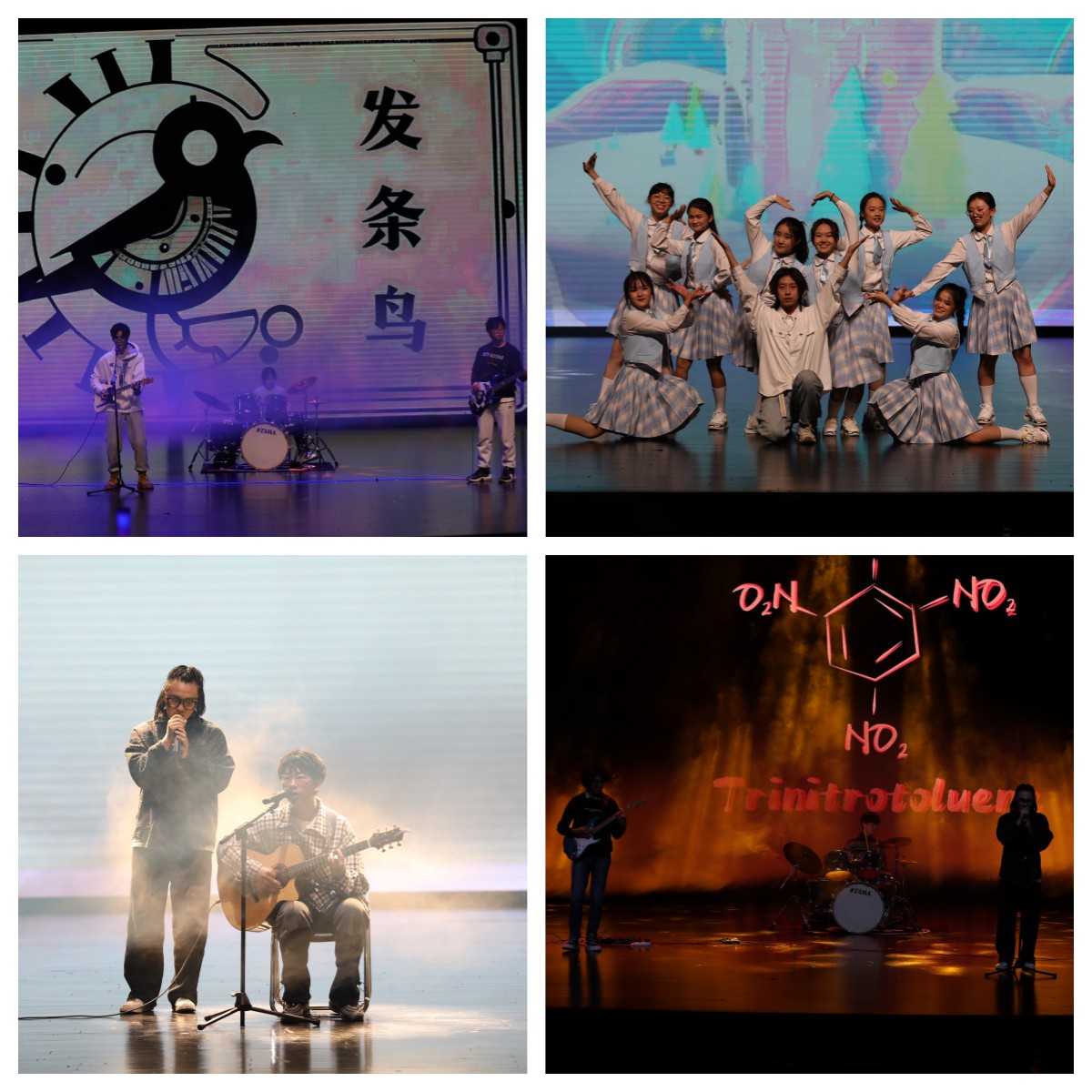 JustYe街舞社带来开场舞《GO HARD》,动感欢快的节奏点燃全场,引起阵阵欢呼。诗朗诵《遇见未来》为大家重现恢弘壮阔的中华历史画卷,探源历史,致远未来。在歌曲《给所有知道我名字的人》里,我们感恩生命中那些默默无声又坚定不移支持自己的人。歌曲串烧《青火+红尘客栈+第一天》唱出了少年漂流不羁的“冒险梦”、快意潇洒的“侠客梦”和充满新奇与希冀的“青春梦”。拉丁舞《Martin》激情四射,尽情散发着青春的活力与魅力,现场尖叫声、掌声不断。随着说唱《Hey Kong》的娓娓述说,我们穿越时空,聆听自己的心意。由同学们自编、自导、自演的情景剧《改代码》传递着坚守本心的信念,鼓励大家在求知的道路上一往无前、奋发图强。歌曲《没有理想的人不伤心》,发条鸟乐队声嘶力竭地宣告着自己对梦想的执着、对孤独和人生的诠释,在人生的旅途中能够始终面对现实且忠于理想,脚踏实地又仰望星空。舞蹈《我的未来式》用轻松的旋律和欢快的舞步,展现了对未来积极的态度和美好的希望。吉他弹唱《silhouettes of you》,悠扬的旋律讲述着动人的故事,好像将我们带到了莱蒙托夫的诗里:一只船在海上向前航行,底下是沉静碧蓝的大海,头顶是金色的太阳。歌曲《天外来物》述说着无限的浪漫与欢喜,让人学会珍惜。随着十八吉他社三硝基甲苯乐队《男孩别哭》《爱人错过》前奏响起,大家挥舞的荧光棒在会场聚成星河,不由自主的合唱将晚会气氛推向最高潮。随后的大合唱《我们走在大路上》,展现了当代大学生传承革命精神,坚定理想信念,怀揣梦想踏上新征程,在艰苦奋斗中锤炼本领,在基层磨砺中增长才干的初心;彰显着不负韶华,不负党和人民的殷切期望,用青春谱写中华民族伟大复兴光辉乐章的决心。