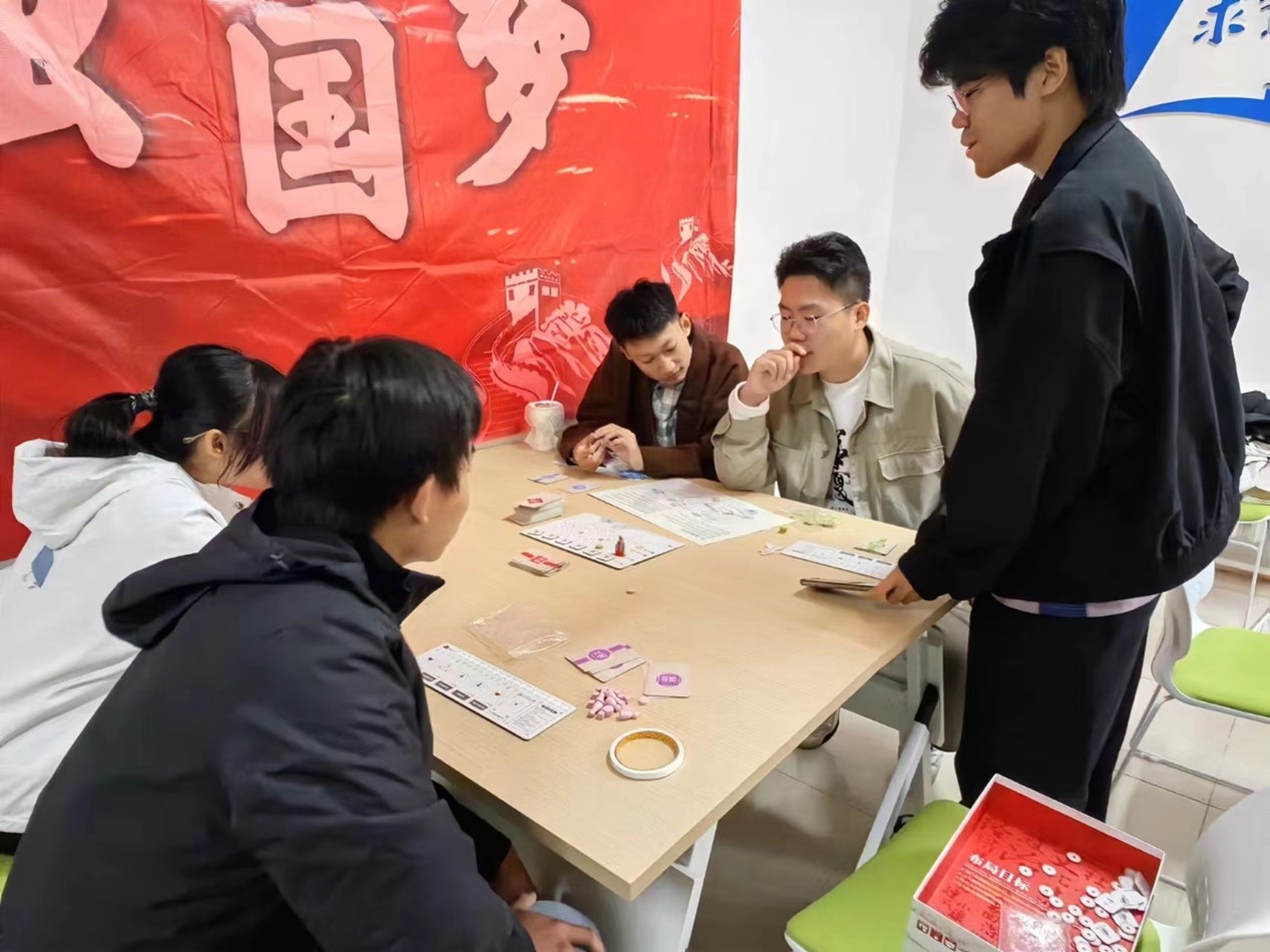 活动共设置了两轮六组比赛,由文艺部成员担任裁判,每组4人,每局游戏时间为60至90分钟不等。“强国梦”主题桌游由新华书店总店推出,背景围绕时代发展,集益智与趣味于一体。玩家通过“建设现代化”“提升文化指数”和“工作区域人才培养”等策略,提升“幸福指数”,最终决出胜负。在游戏过程中,玩家不仅要体会从无到有的艰难发展历程,还需运用智慧,制定有效策略,通过“发展卡”“纲要卡”“问题卡”等环节,规划自己的特色发展之路。游戏中涉及的正能量、现代化建设、全面深化改革等关键词,紧密结合时代主题,人才、大学、工作等元素与学生生活息息相关,激发了大家对当前时代责任的深刻认知与思考。