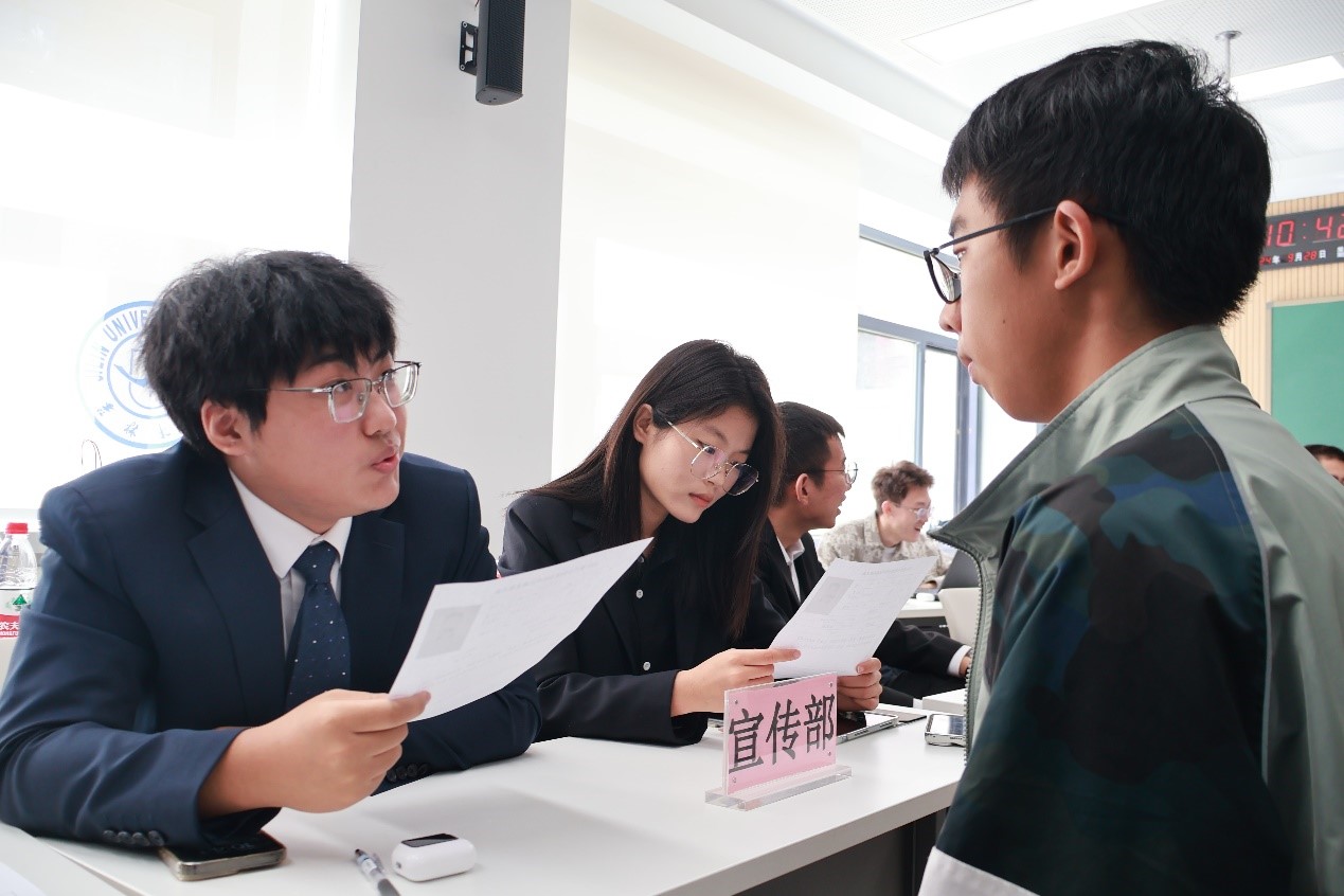 在敬信教学楼C101和C105教室正式开展了团学的面试工作。团学各部门部长及副部长全员到场,准备迎接新生力量的加入。参加面试的新生依次进行自我介绍并参与现场问答,展现出各自的特长与能力,表达了他们对学生工作的热情与期待。经过紧张而有序的面试,纳新工作圆满完成。无论是否加入理想的部门,相信每一位同学都能在团学组织中找到属于自己的舞台,发光发热,开启充实而美好的大学生活。