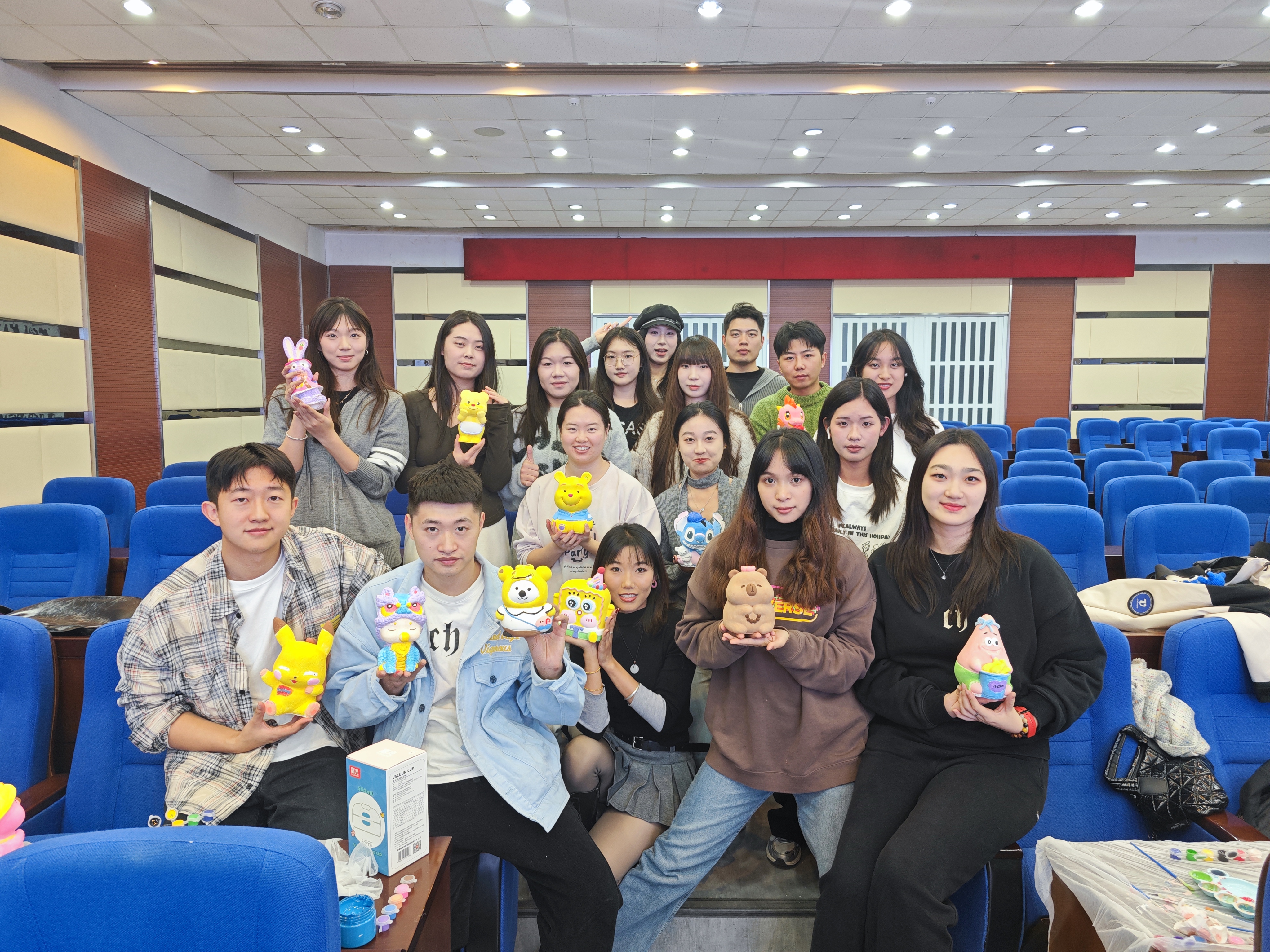 携手商学与管理学院、体育学院于11月17日在东荣大厦B310举办了一场别开生面的“心晴彩绘·童趣疗愈”卡通记忆奇趣记心理活动。本次活动以童年经典动画作品为主题,通过石膏娃娃涂鸦的形式,让同学们在怀旧的氛围中寻找童趣,释放压力。
