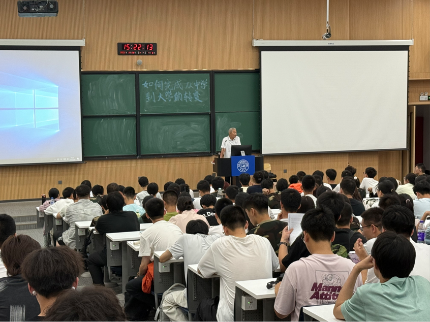 讲座紧扣“中学与大学的核心区别”以及“适应转变的实用方法”这两个方面展开。柳军首先系统梳理了中学与大学的关键差异,着重强调“无人监督下的自我管理”,点明学习认真程度要进一步提升;同时结合大学教室空间频繁转换的实际情况,点明了环境适应的重要性。他还突出强调了高效利用课余时间与提升自学能力的必要性,指出大中阶段转变的核心在于从被动接收转向主动探索、从依赖引导转向自主判断,在大学应开阔视野,学会区分“思”与“想”的深度差异,真正掌握“学习”这一核心技能,并且要重视大学规划制定与身心素质的双重考验。此外,柳军强调了同一起跑线的公平性,呼吁大家放下“高分高傲”与“低分自卑”的心理,以平和的心态开启新阶段。