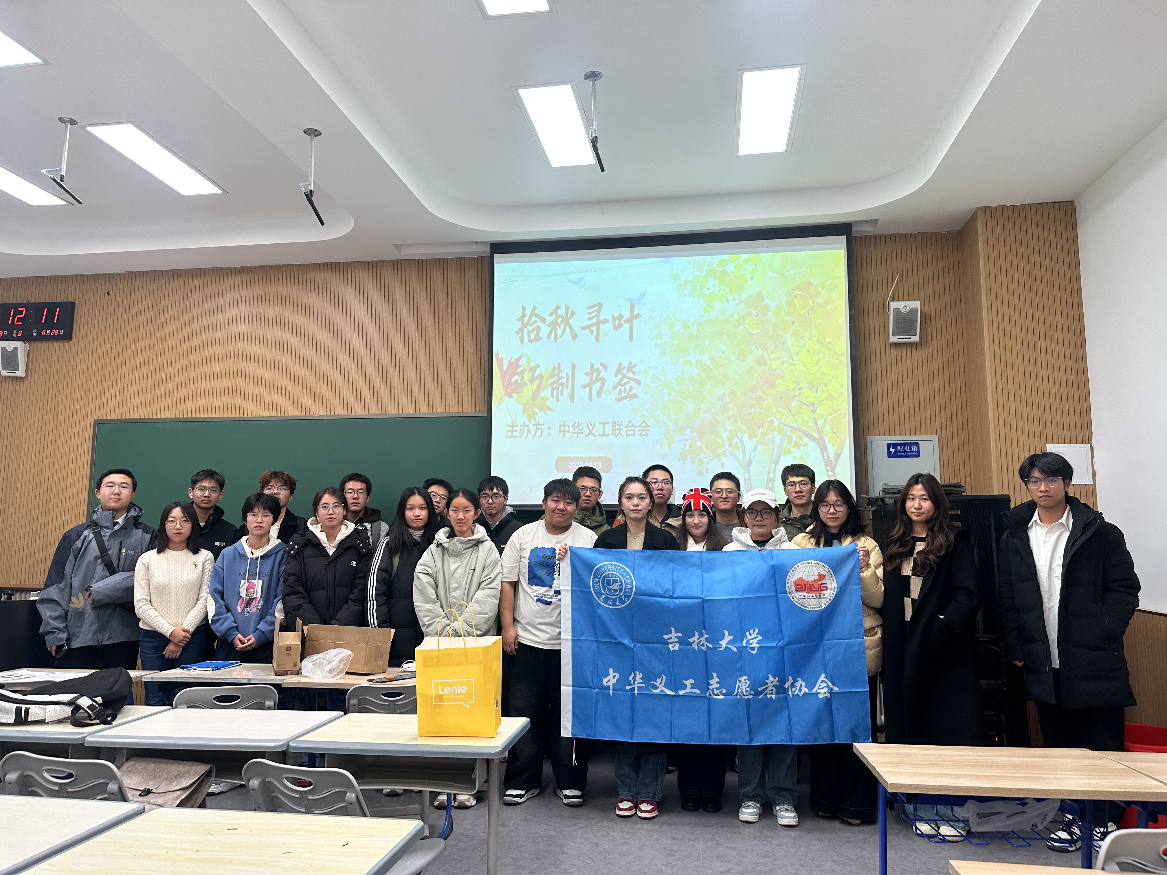 李四光楼111教室内暖意融融、创意涌动,“拾秋寻叶巧制书签”活动在此顺利开展。作为承载校园厚重历史与科学家精神的标志性建筑,李四光楼为这场融合自然之美与手工创意的活动赋予了独特文化内涵,活动启动仅一小时,便吸引近百名学子踊跃参与。