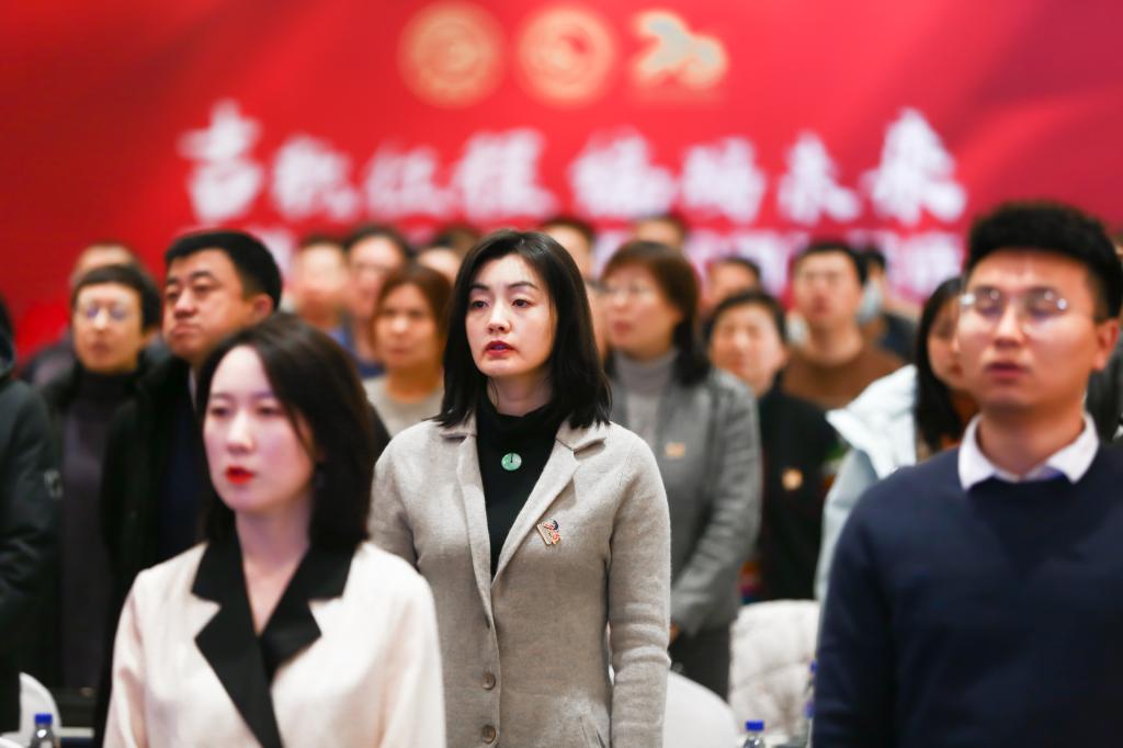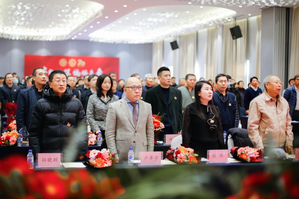 校歌响起时,所有参会人员全体起立,齐声高唱,共同祝愿肉漫屋